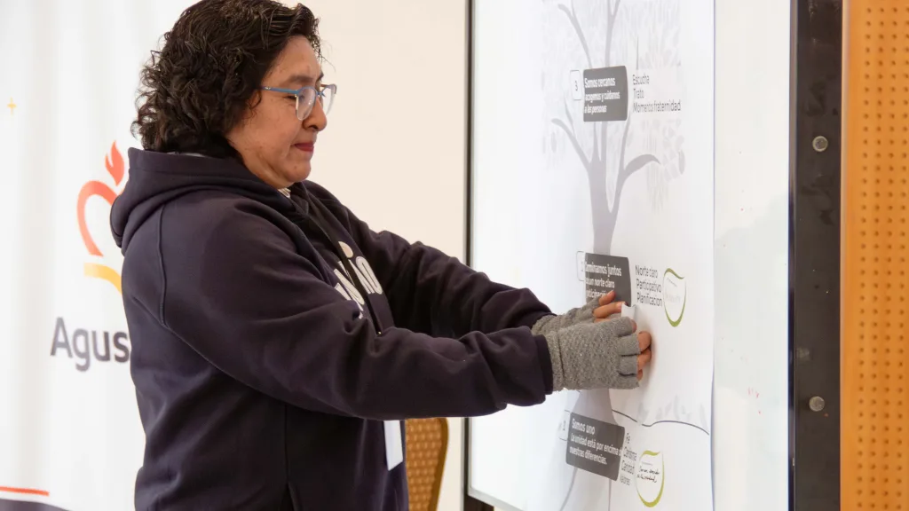 Luego, los participantes repasaron en conjunto los tres primeros principios del programa —Somos uno, Caminamos juntos y Somos cercanos— revisando sus herramientas, aprendizajes y desafíos para seguir viviéndolos en sus comunidades parroquiales. Fue un momento clave para consolidar los pasos dados.
