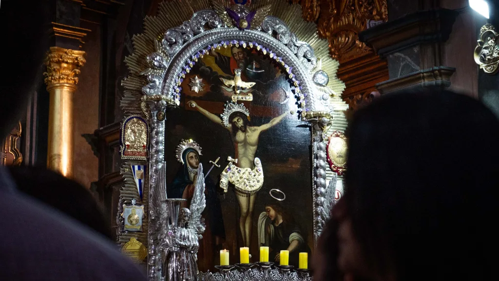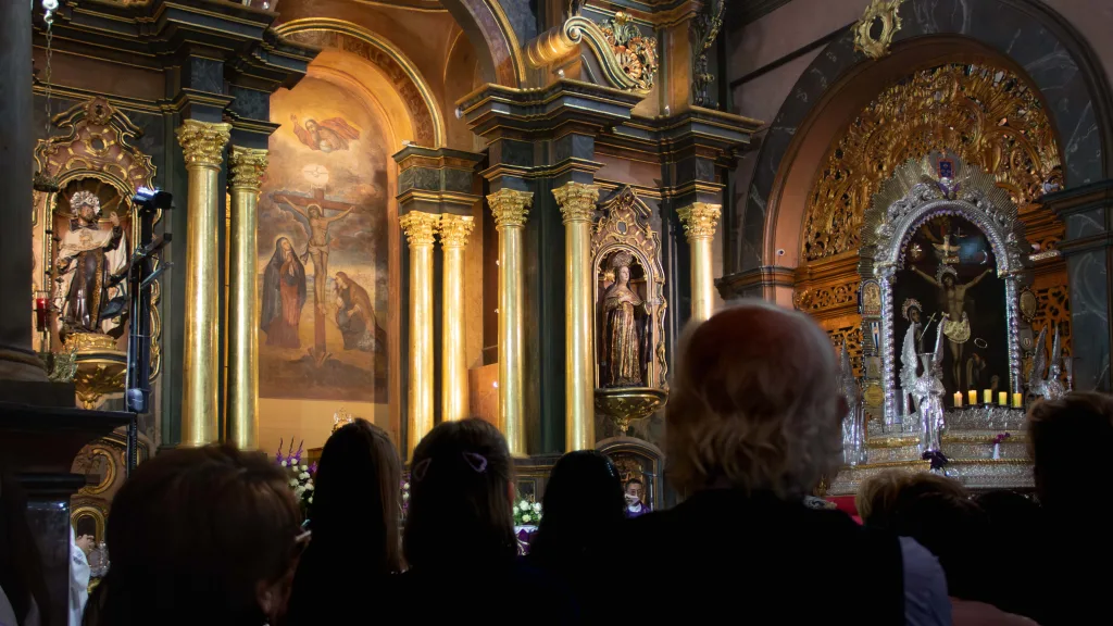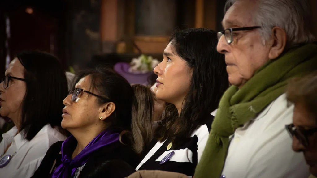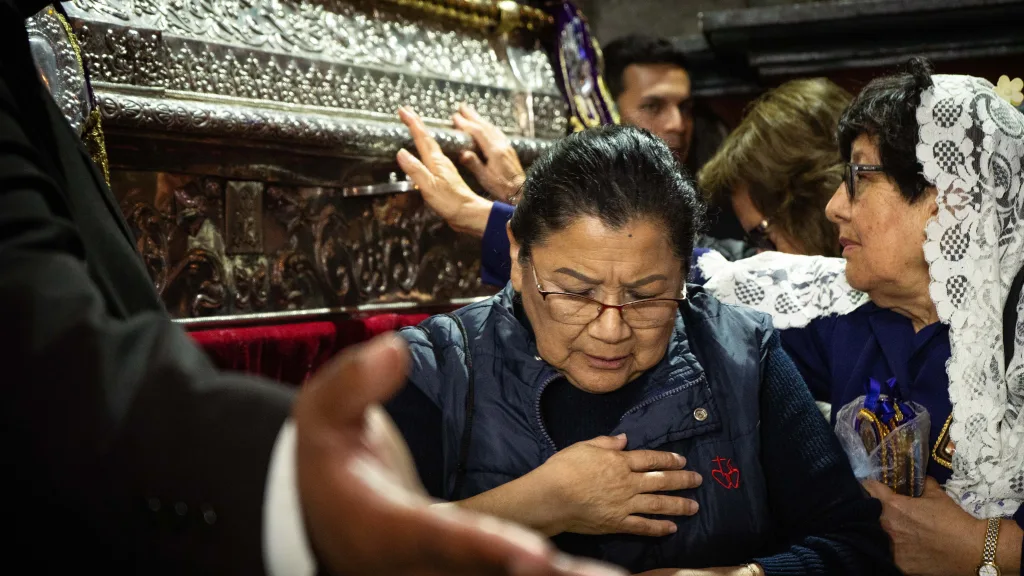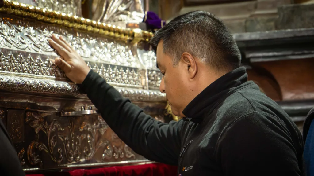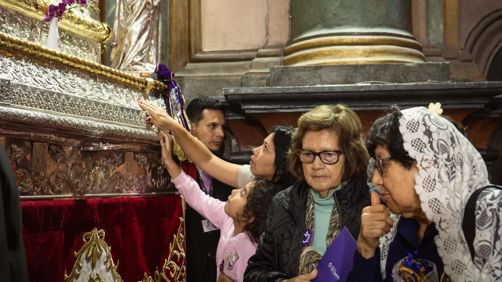 El momento más conmovedor de la jornada fue la visita al anda del Señor de los Milagros, cuando cada participante se acercó con recogimiento para tocarla y presentar sus intenciones personales y comunitarias.