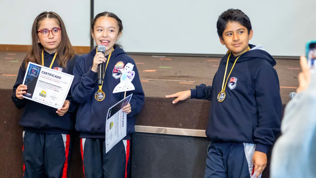 En esta edición, nuestros estudiantes Facundo, Isabella y Dannia alcanzaron el Primer Puesto en la categoría Elementary – Futuros Innovadores, destacándose entre varios equipos por la creatividad de su propuesta.